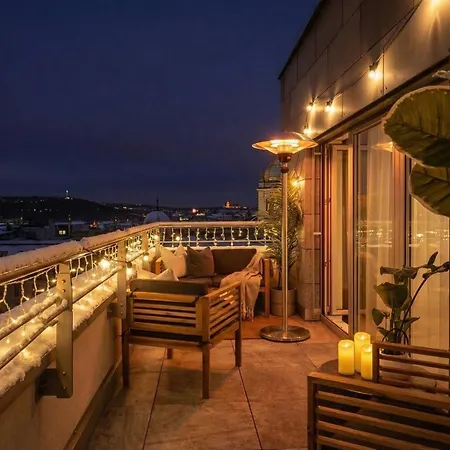 Turnkey I Central Apartment With Terrace毗邻瓦茨拉夫广场,距离布拉格瓦茨拉夫-哈維爾國際機場机场20公里. 客房配有沙发,咖啡/茶设施 和休息区,大厨房配备电子热水壶,咖啡壶/茶壶 和冰箱.
